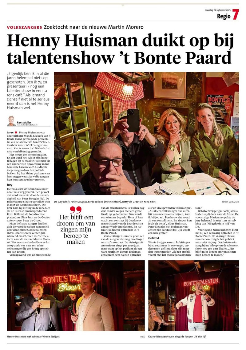 Henny Huisman duikt op bij telantenshow 't Bonte Paard